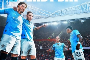 曼城发布德比战海报:德布劳内、马尔穆什、萨维尼奥、尼科出镜